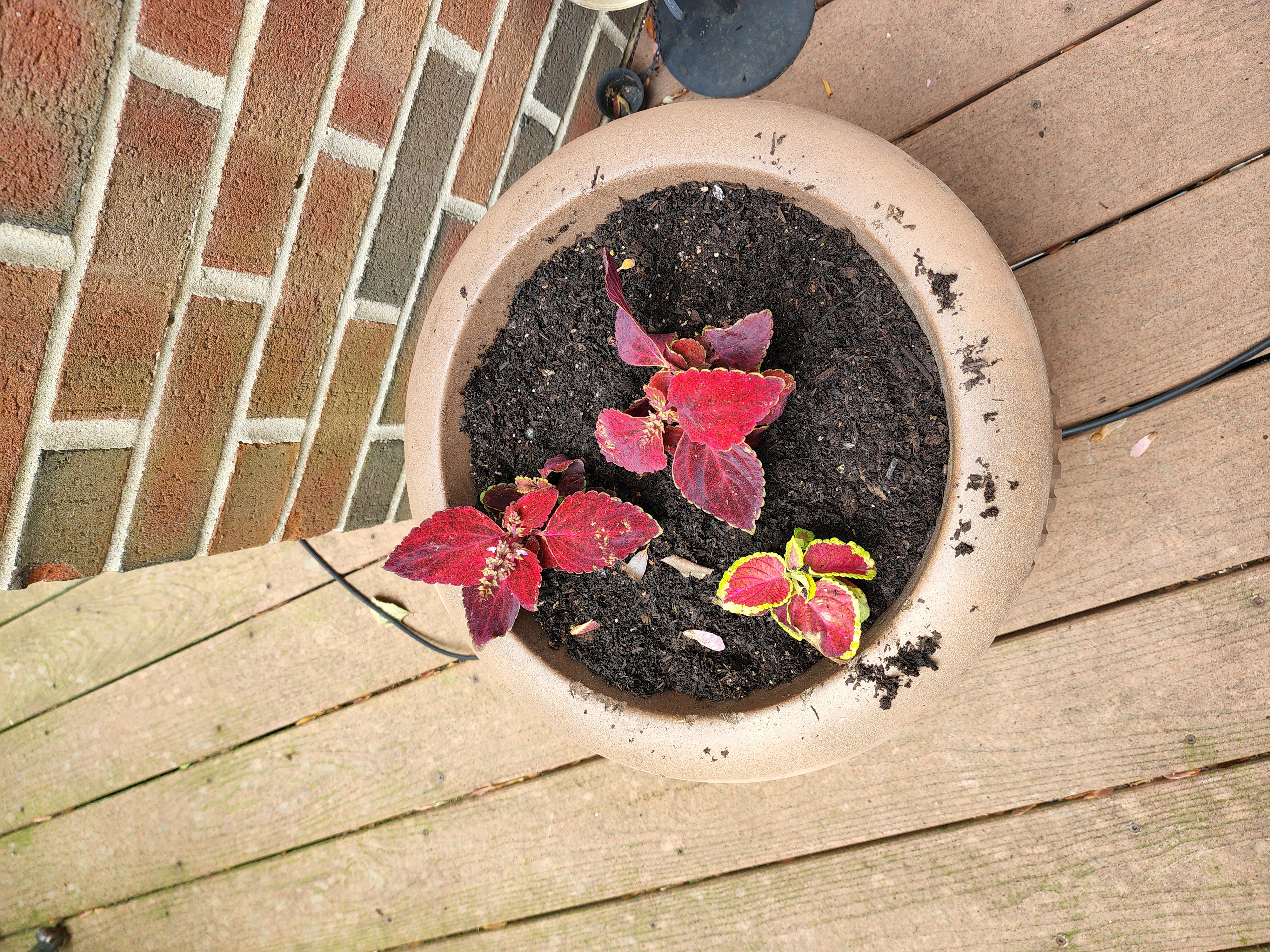 ] 'Coleus' located in bed 'Deck' described as 'Three plantings of same.'. The nearest marker is [