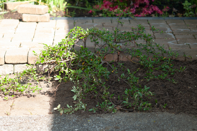 Cotoneaster creeps onto driveway and sidewalk.